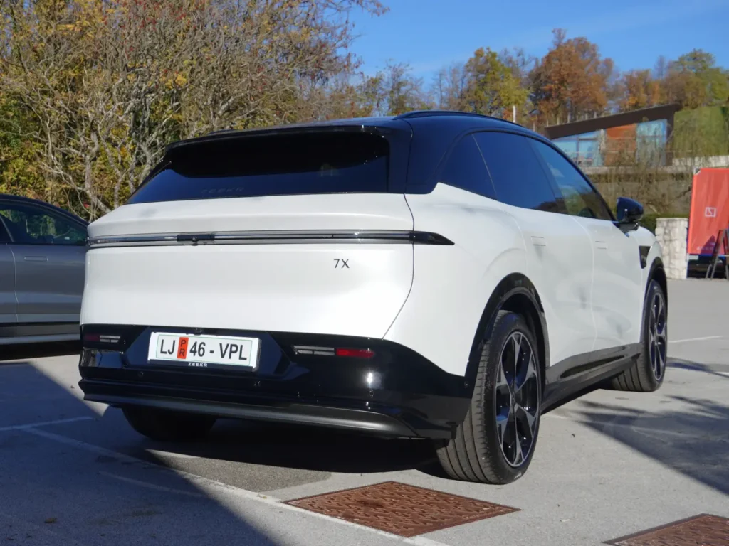 O obliki modela Zeekr 7X bi se dalo razpravljati, a prostornosti v 4,78 metra dolžine in tehnološke naprednosti mu ne gre oporekati. Enka in kot bomo videli, tudi Zeekr X imata 400-voltno arhitekturo, tukaj pa so vgradili 800-voltno, kar se pozna pri hitrosti polnjenja. Od 10 do 80 odstotkov v le 13 minutah. Tokrat sta bateriji dve. Core s pogonom na zadnji osi ima baterijo kapacitete 75 kilovatnih ur, zanjo velja prej omenjeni podatek o času polnjenja, motor z močjo 475 kilovatov (646 konjskih moči, 3,8 sekunde do sto) ter doseg do 480 kilometrov. Izvedba z dolgim dosegom ima prav tako pogon zadaj. Baterija je tokrat kapacitete 100 kilovatnih ur, moč motorja 310 kilovatov (421 konjskih moči, 6 sekund do sto) in doseg okoli 615 kilometrov. Enaka baterija je v izvedbi Privilege s pogonom na vsa štiri kolesa in 475-kilovatnim motorjem. Cene so od 54 do 63 tisočakov.