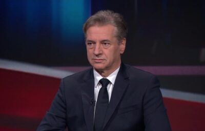 Ko je delil svoje politične modrosti, ki bi jih vsak resen novinar raztrgal v petih sekundah, je bila voditeljica Tanja Gobec podložno tiho, v skladu s starim Stanovnikovim navodilom novinarjem: “Vi ste tukaj, da me zaščitite.”