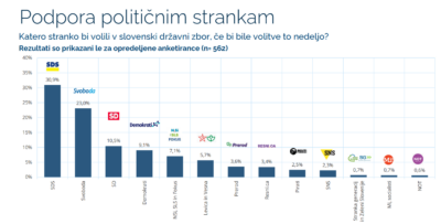 Parsifalova anketa kaže na udobno vodstvo SDS, za katero se uvršča Golobova Svoboda, nato sledijo Socialni demokrati, Logarjevi Demokrati, koalicija strank NSi-SLS-Fokus in duet strank Levica in Vesna.