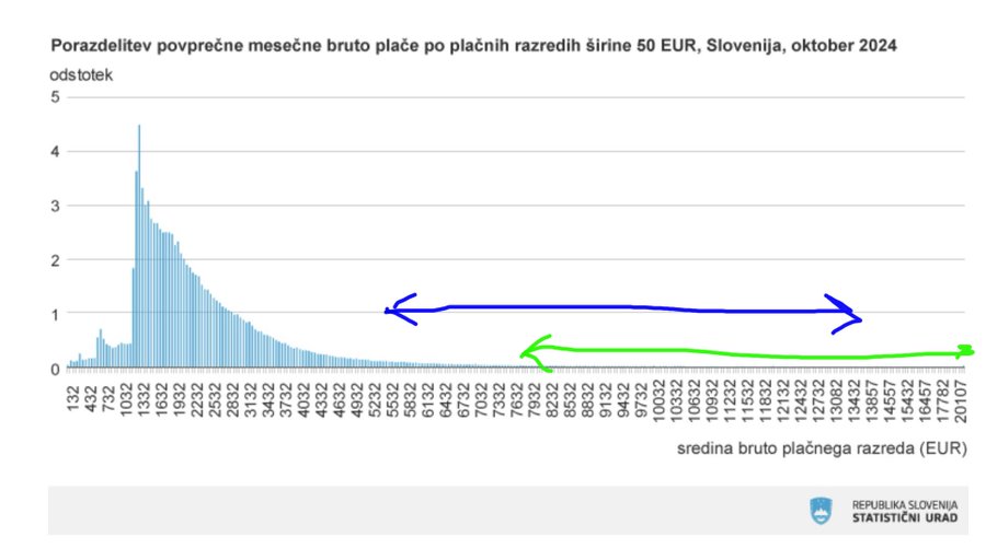 “Svoboda predlaga kapico pri razponu od 5.258 do 13.145 €. Trojček pa za vse nad 7.500 €. Pri predlogu trojčka bi prišlo do izpada socialnih prispevkov skupine prebivalstva, ki je na spodnjem grafu označena z zeleno črto (1 % najbolje plačanih). Pri predlogu Svobode bi prišlo do izpada socialnih prispevkov skupine prebivalstva, ki je na grafu označena z modro črto. Tu bi šlo za izgubo prispevkov 5 % najbolj plačanih z izvzetjem zgolj enega dela prispevkov zgornjega promila najbolje plačanih). Na misel mi pade samo ena beseda. Prevara,” je ponudbi Svobode zapisal I. Muževič.