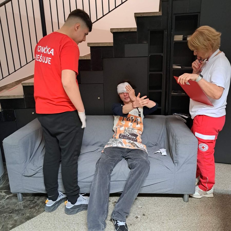 Kako pravilno ravnati ob epileptičnem napadu, paničnem napadu, neodzivnem otroku, odprtem zlomu, … so bili izzivi, ki so jih najbolje rešile članice zmagovalne ekipe OŠ Trbovlje (Ula, Brina, Zala, Inja, Zara in Teja). Že v naslednjem tednu se bodo udeležile regijskega preverjanja, ki bo v Domžalah.