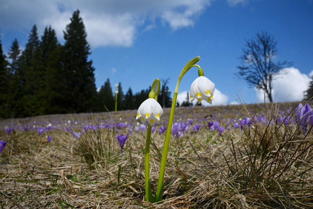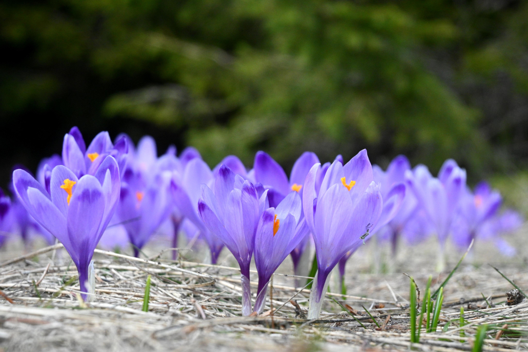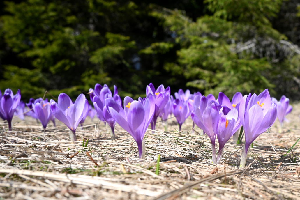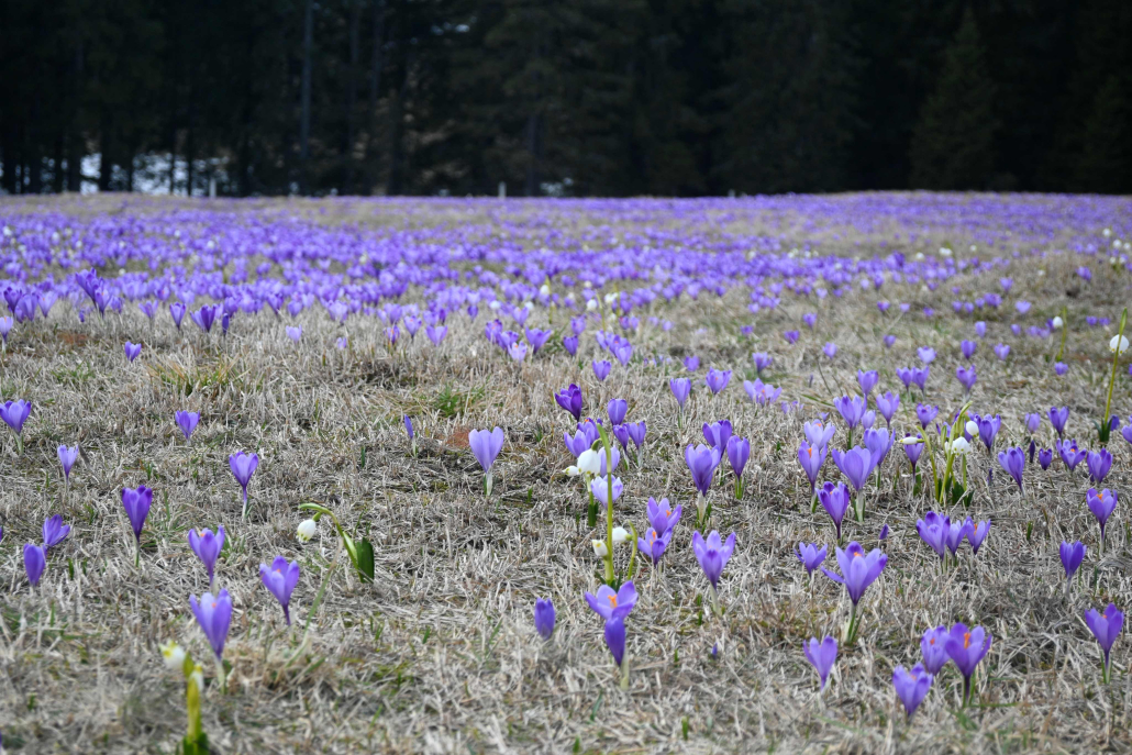 Pot se blago vzpenja skozi gozdove – kot se za Pohorje spodobi – proti Rogli. Pred hoteli sem zavil levo po poti čez čudovite – v tem času cvetenja žafranov – vijolično obarvane travnike nad izvirom Mislinje.