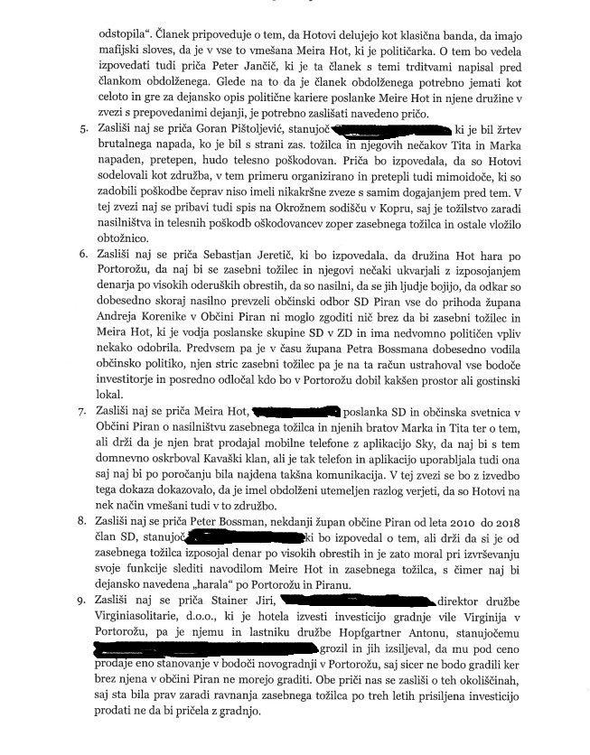 Družinski član poslanke Socialnih demokratov Meire Hot – Vejsil Hot zasebno toži novinarja Bojana Požarja zaradi domnevnega “nadaljevanja kaznivega dejanja žaljive obdolžitve”. Požar v svojih prispevkih poslankini družini očita nasilništvo in vpletenost v kriminal.