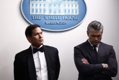 Marco Rubio in Pete Hegseth poslušata Trumpovo tiskovno konferenco po streljanju, foto: EPA/WILL OLIVER