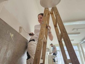 Kot je ravnateljici znano, je bila šola nazadnje prepleskana okoli leta 2013. Takrat je namreč potekala energetska sanacija šole. “Potem pa vsako leto kakšno steno. Toliko kot nam dopuščajo razpoložljiva finančna sredstva. Pa še to ne s pomočjo mojstrov.” Letos so torej učilnice prepleskali pravi mojstri svojega poklica. Akcije se je udeležilo 99 slikopleskarjev in drugih prostovoljcev in “v enem dnevu naredili to, za kar bi sami potrebovali več let.”