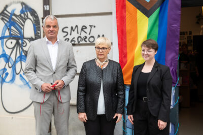 Saša Arsenovič in Nataša Pirc Musar (Foto: Bobo)Mariborčan Aleksander Jovanovič je javnosti postal znan, ko je v elitno sosesko na Studencih naselil krškopoljske prašiče, zato ker občina ni želela spremeniti namembnosti zemljišča iz kmetijskega v gradbeno.