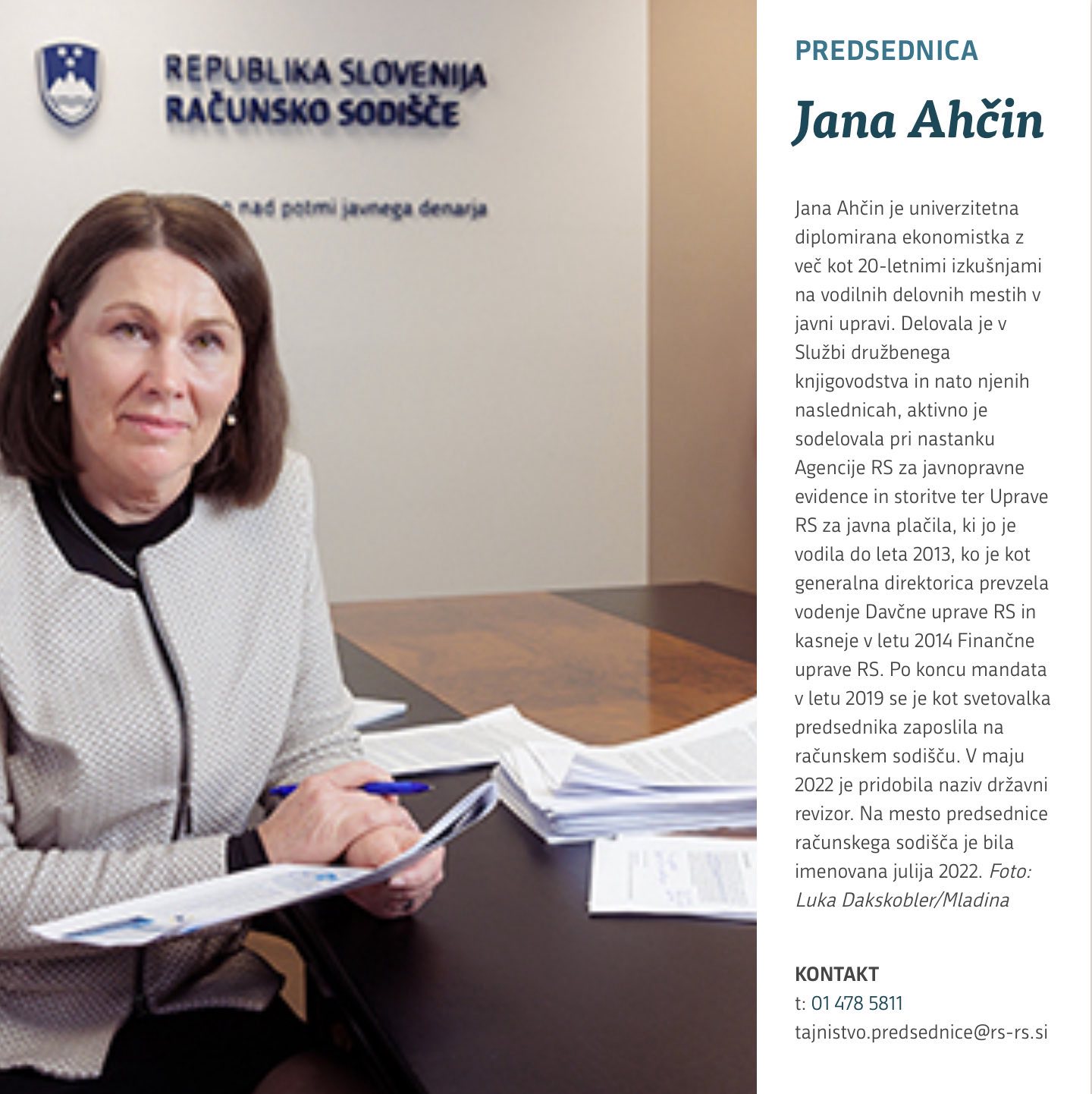 Jana Ahčin je bila za predsednico računskega sodišča imenovana 1. julija 2022, ko je državni zbor že vodila Svoboda. Na ta dan jo je državni zbor potrdil na tajnem glasovanju, s 60 glasovi za in 19 proti, s tistim dnem je prevzela 9-letni mandat. V letih 2014 do 2019 je bila generalna direktorica Finančne uprave RS.