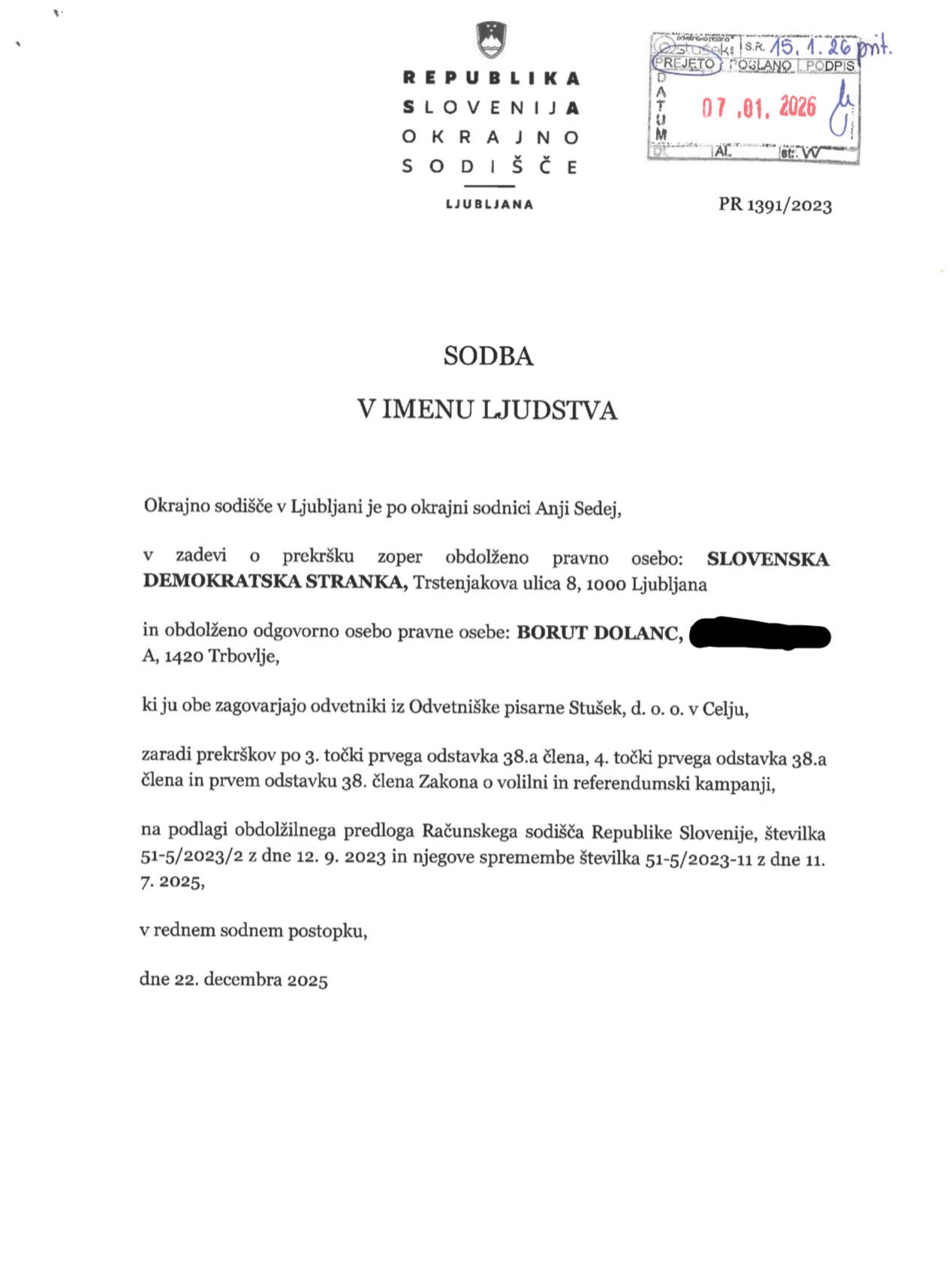Drugo fazo eksekucije je zato izvedla okrajna sodnica Anja Sedej, ki je kljub predstavljenim dokazom in pojasnilom SDS prisodila drastične kazni za minorne ali povsem izmišljene prekrške. Gospa sodnica je bila verjetno posebej izbrana za to umazano delo delitve selektivne pravice, saj je izšla iz Inštituta za kriminologijo pod okriljem Dragana Petrovca, ki je mirne vztrajnike pred sodiščem zmerjal s “sodrgo”. Med drugim kaznuje stranko, ker naj bi Nova24 TV promovirala kandidate SDS npr. Kaj pa so počeli POP TV, Delo, RTV SLO …. oziroma vsi (mediji) MSM?