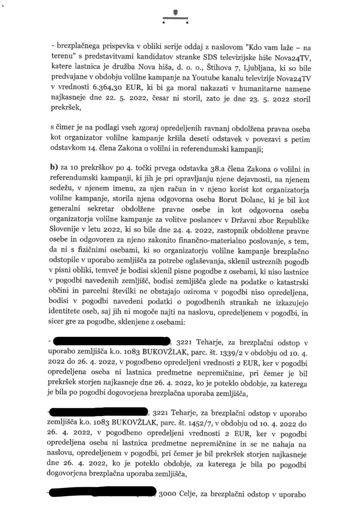 “Računsko sodišče je po volitvah 2022 pregledalo kampanje strank in pri večini ugotovilo manjše pomanjkljivosti, pri stranki Gibanje Svoboda pa npr. povsem spregledalo najem milijonskega kredita brez kakršnega koli kritja. Prijavo pa je družbeno politična delavka na mestu predsednice Računskega sodišča Jana Ahčin vložila zgolj proti SDS, čeprav stranki v zaključnem poročilu ni izdalo negativnega mnenja.