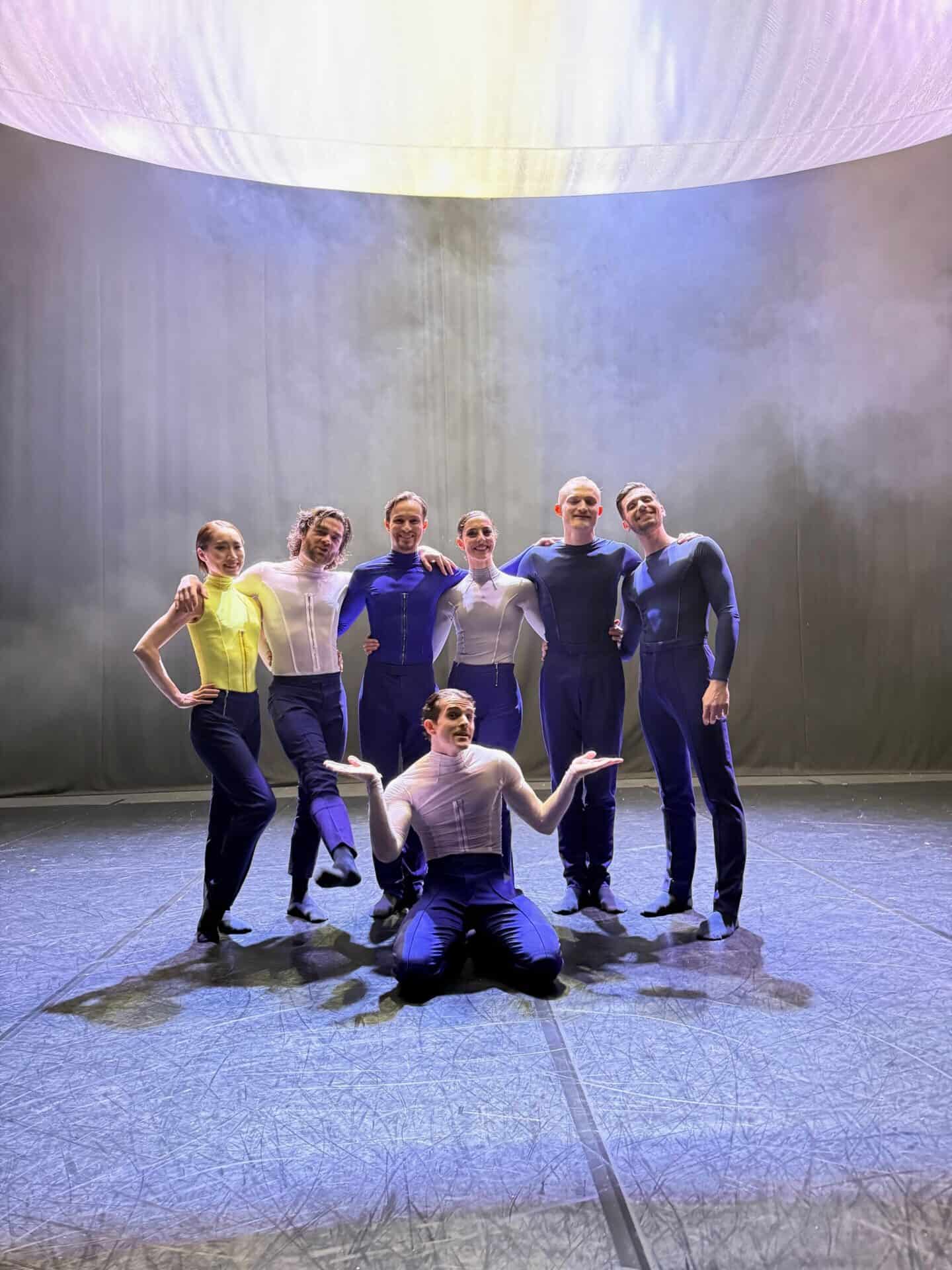 Zadovoljni plesalci po nastopu koreografije Proof: Asami Nakashima, Beatrice Bartolomei, Davide Buffone, Ionut Dinita, Christopher Thompson, Lucio Mautone in Matteo Magalotti.