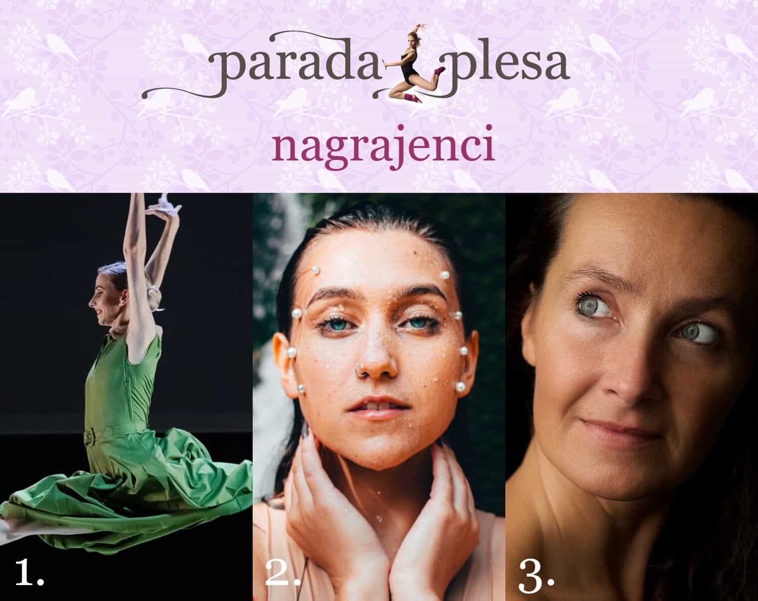 Čestitke Lari Flegar (foto: Darja Štravs Tisu), drugouvrščeni Leji Messec in tretjeuvrščeni Katja Dance Company (foto: Albert Podrekar).Mony design nagrajuje tudi glasovalce in šest izžrebanih, ki prejme roza prstan je: Monika Stojakovič, Bernardka Keglič, Jadranka Pelan, Lana Koron, Tanja Inamo in Gaia Paravan. Vsi prejmete nagrade po pošti v desetih dneh od objave na naši spletni strani. Prosim, da nagrade tudi prevzamete! In ker smo v času družbenih omrežij, ko je ‘šeranje’ oz. označevanje zelo zaželeno, lahko vsi, ki imate Instagram, označite/’tegate’ na fotografiji, ki jo objavite ob prejetju nagrade, #paradaplesa ‘Sharing is caring!’ Glasovanje je nastalo v sodelovanju z Medex d.o.o. in Monika Jenkole s.p.