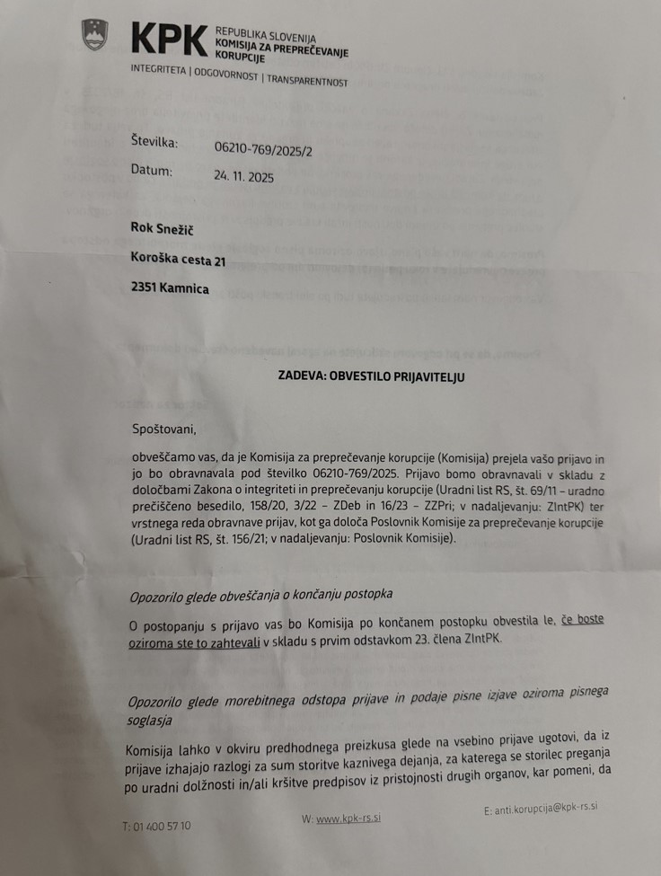 Snežič v nadaljevanju pojasni da je “registriran davčni svetovalec z licenco in lobist z licenco, ki mi jo je podelila prav Komisija za preprečevanje korupcije – torej so me oni preverili, da nimam kazenskih postopkov, da je vse čisto. In zdaj premier na uradni vladni strani svari: “Če boste sodelovali z Rokom Snežičem, lahko zaidete v hude davčne težave.”