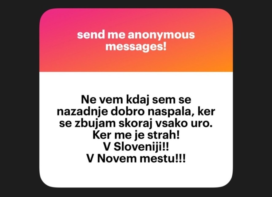 “Ne vem, kdaj sem se nazadnje dobro naspala. Ker me je strah. V Sloveniji! V Novem mestu!”