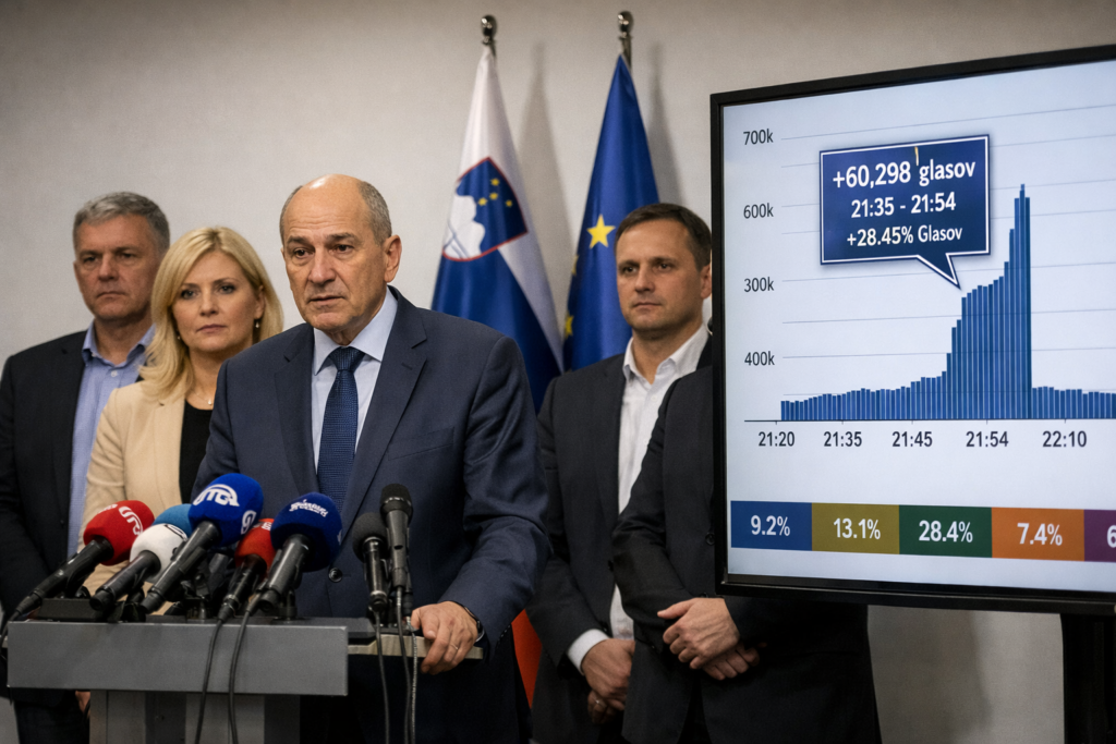 Slovenska demokratska stranka (SDS) je po volitvah v državni zbor zahtevala neodvisno, celovito in strokovno vodeno forenzično preiskavo informacijskega sistema Državne volilne komisije (DVK). Razlog je izpad spletnega sistema DVK na dan volitev, 22. marca 2026, ki se je zgodil v ključnem času objave volilnih rezultatov.