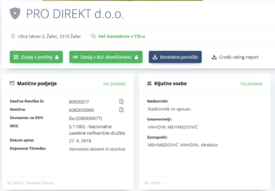 Vir: BIZIPodatki z BIZI kažejo, da je direktor družbe Vahidin Mehmedović, ki je bil očitno sam prisoten na delovišču. Šlo naj bi za osebo na spodnjem posnetku.