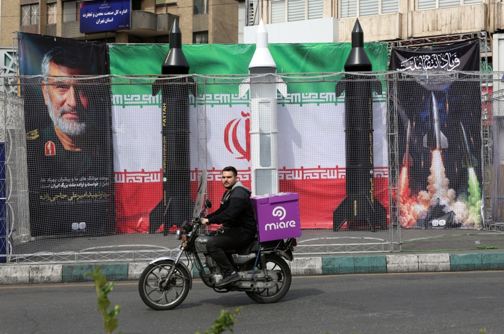 Motorist, ki se pelje mimo simboličnih izstrelkov v Teheranu v Iranu, 22. marca 2026 (Foto: epa)“Iran praktično nima več zmogljivosti, da bi izstrelil kakršnokoli balistično raketo. To ne pomeni, da jih nima, ampak definitivno ne more več izstreljevati raket dolgega dosega; kratkega sicer še lahko, ampak v zelo omejenih količinah,” meni Kovač.