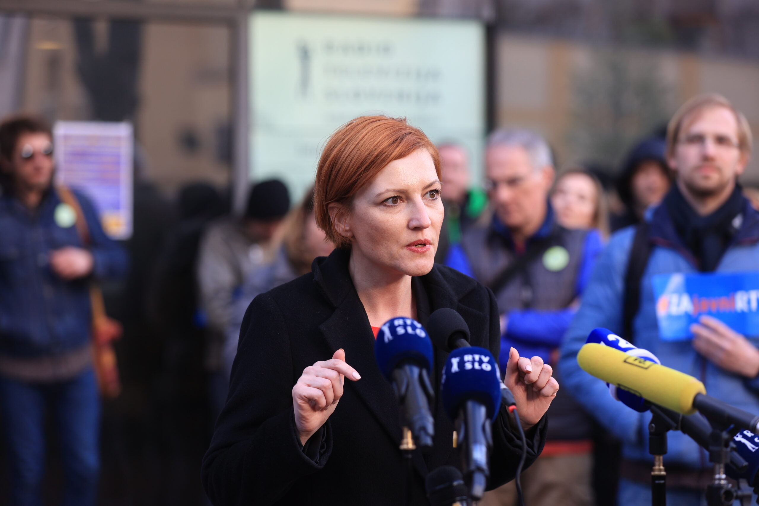 Poznavalci pravijo, da je RTV ugrabila skrajna Levica. Ministrica iz vrst Levice na protestu aktivističnega/antijanšističnega dela zaposlenih na RTV. (Foto: Bobo)Na RTV Slovenija očitke o cenzuri zavračajo in vztrajajo pri pojasnilu o organizacijskih razlogih za odpoved oddaje. Vendar odsotnost konkretnejših informacij o razlogih in okoliščinah odpovedi ne pomirja dvomov.