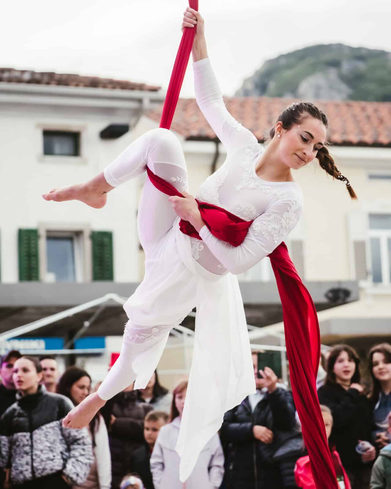 Rekla bi, da za vrhunsko izvedbo pomaga, če se s podobnimi disciplinami ukvarjaš že od mladih let, saj zahteva veliko moči in telesne kontrole. Ko pa gre za ples za dušo, verjamem da tam ni pravil. Vsak lahko poskusi in najde svoj način, kako mu svila ustreza. Pomembno je le, da ti je všeč in da uživaš v tem, kar delaš.