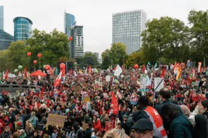 V Bruslju se je v torek zbralo več kot 100.000 ljudi, ki so protestirali proti predlaganim varčevalnim ukrepom premierja Barta De Weverja. Policija je skušala množico razgnati s solzivcem in vodnim topom, izbruhnili so tudi spopadi, protestniki pa so prižigali bakle in dimne bombe ter zasedli glavne prometnice v belgijski prestolnici. Zaradi stavke so odpovedali ...