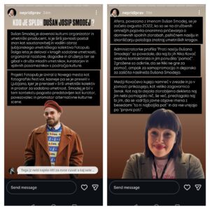 Nepridiprav se je lotil afere Fotopub z objavo o obtoženemu Dušanu Josipu Smodeju, Opisan je kot soustanovitelj in vodilni obraz ljubljanskega umetniškega kolektiva Fotopub, ki je izviral iz Novega mesta kot fotografski festival, kasneje pa se razvil v prostor za sodobno umetnost. Smodej je deloval v krogih mladih umetnikov, organiziral razstave, dogodke in druženja ter se predstavljal kot kurator in promotor alternativne kulturne scene.