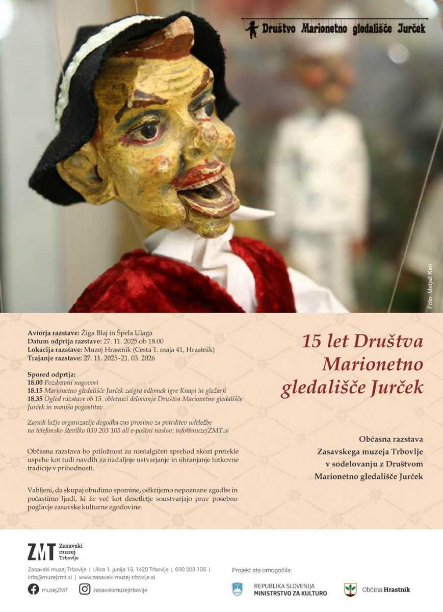 Občasna razstava Zasavskega muzeja Trbovlje bo priložnost za nostalgičen sprehod skozi pretekle uprizoritve lutkovnih iger in nadaljevanje ustvarjanja in ohranjanje lutkovne tradicije v prihodnosti. Razstavo ZMT so pripravili v sodelovanju z Društvom Marionetno gledališče Jurček.