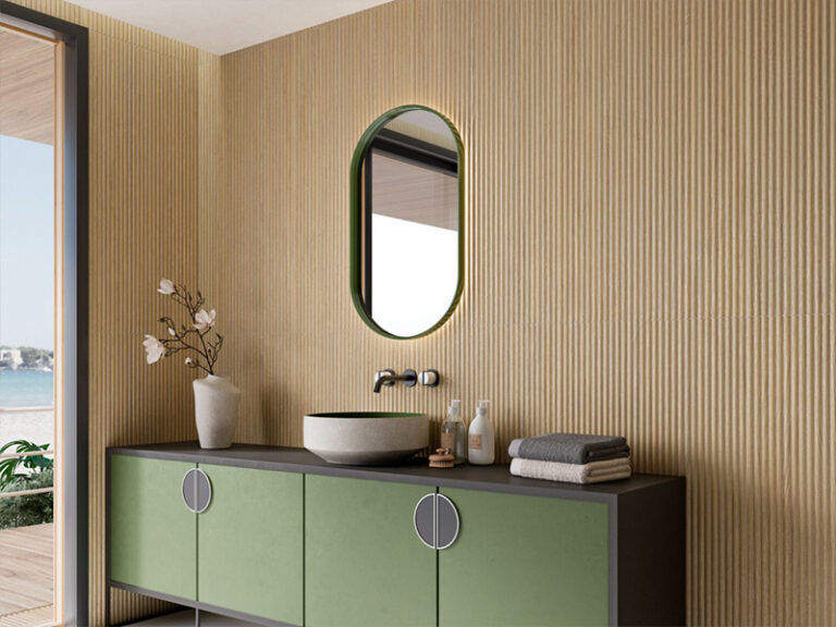 Zanimanje narašča tudi za temnejše lesene odtenke, ki v prostor prinesejo globino in prestiž – odlična izbira za sodoben minimalizem ali luksuzne kopalnice.