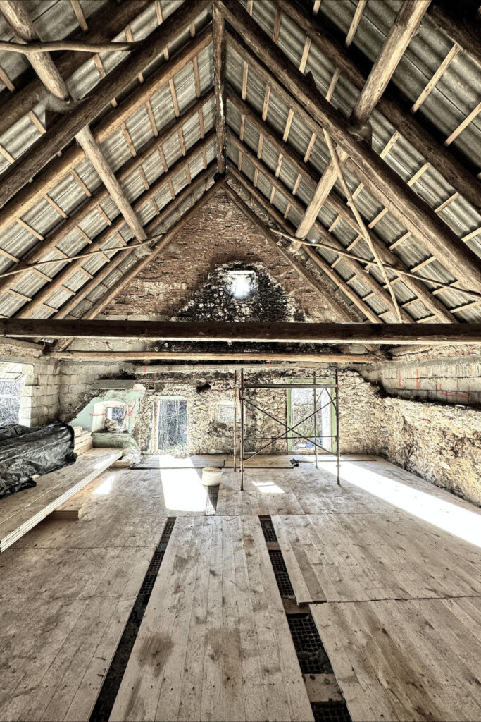 Še istega leta smo začeli s projektiranjem vseh treh objektov, v letu 2022 pa smo zanje dobili gradbeno dovoljenje. Prenova se je začela v letu 2023, dela so stekla zgolj na glavni hiši. Ta bo po prenovi ostala jedro domačije, v njej bo stanovanje lastnikov. Druga dva objekta bosta namenjena kratkotrajni nastanitvi.
