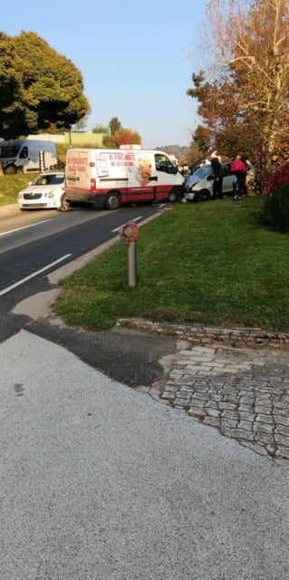 Danes popoldne je v Smolenji vasi prišlo do prometne nesreče treh vozil, dveh osebnih avtomobilov in dostavnega kombija.
