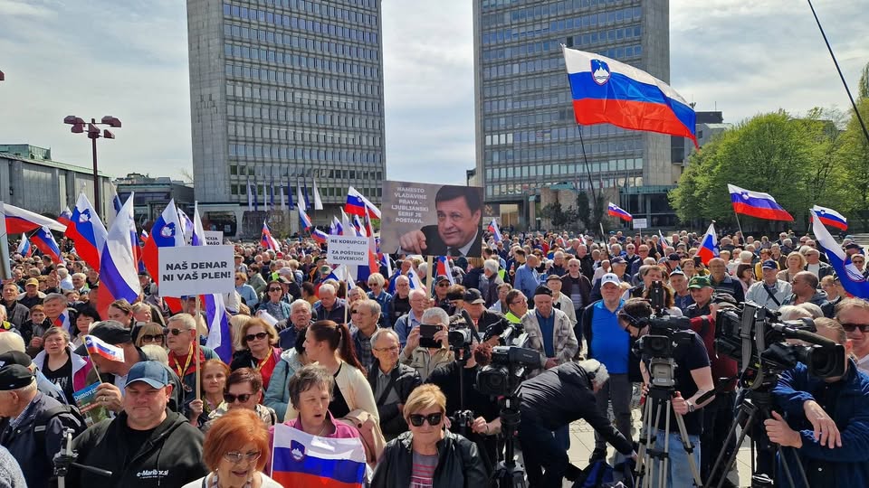 Boris Tomašič je shod poimenoval “Dosti vas imamo”, kritiziral Roberta Goloba, Alenko Bratušek in Zorana Jankovića ter predvajal posnetke, ki nazorno prikazujejo korupcijske posle.