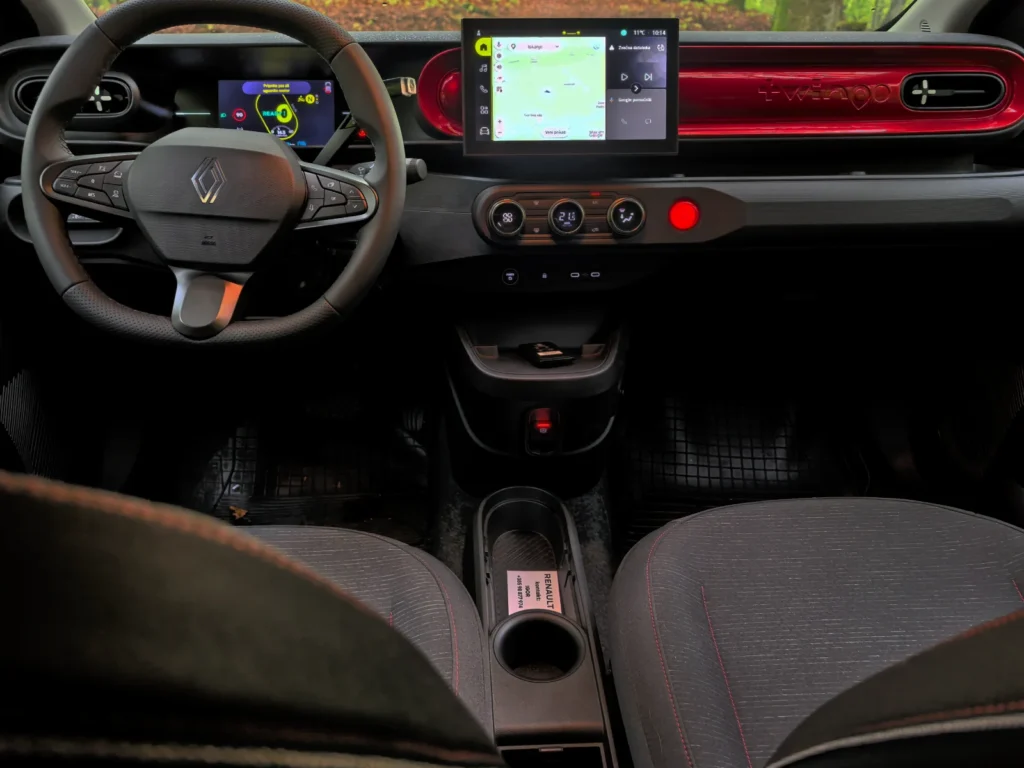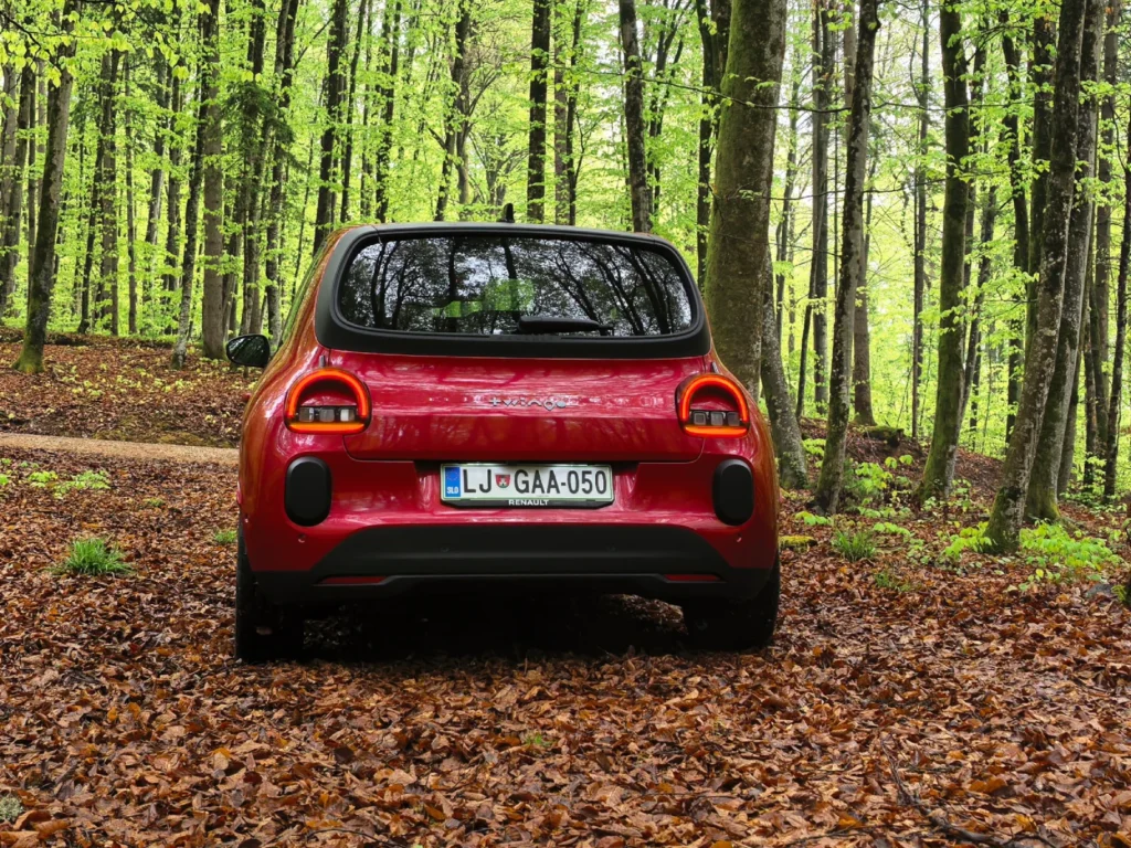 Saj res. Poraba in doseg. Ne morem še reči ničesar dokončnega. Uradno naj bi bila 12,2 kilovatne ure na sto kilometrov, kar v kombinaciji z baterijo kapacitete 27,5 kilovatne ure znese 263 kilometrov do naslednjega polnjenja. Bomo videli, kako realno je to. Tisti dan se je na koncu ustavila pri 14 in pol kilovatnih urah, in to po slabih petdesetih prevoženih kilometrih. Ponovno se je smiselno vrniti na namembnost Twinga. Četudi pozimi ali zaradi težke noge na stopalki za plin doseg pade na 150 kilometrov, je to za vožnjo po slovenskih mestih in do bližnjih krajev za nekatere dovolj. Več bom kajpada povedal, ko Twinga dobim na test. Poraba in priročnost vozila za poti po Sloveniji bosta v ospredju. Takrat se bo izkazalo, ali sta 6,6-kilovatno polnjenje na izmenični tok, ki ob dodatnem paketu naraste na 11 kilovatov, in 50-kilovatno polnjenje na enosmerni tok dovolj praktična za vsakodnevne potrebe.