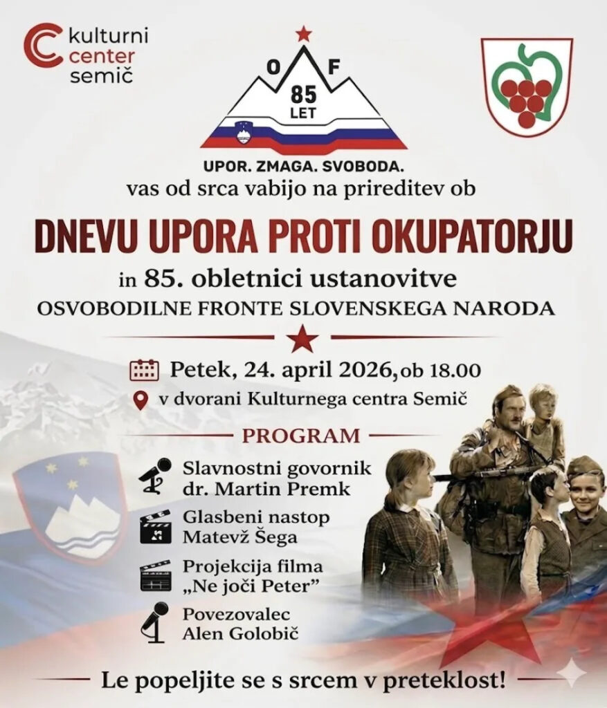 Občina Semič jutri vabi na občinsko proslavo, s katero bodo obeležili dan upora proti okupatorju, pri tem pa je na vabilo poleg slovenske zastave natisnila še tudi zastavo nekdanje Socialistične republike Slovenije in rdečo zvezdo, oba simbola nekdanjega totalitarnega režima.