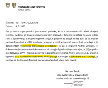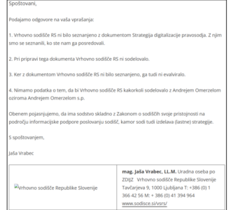 Odziv Vrhovnega državnega tožilstva, da s strategijo digitalizacije pravosodja, ki jo je pripravil Andrej Omerzel, sploh niso seznanjeni