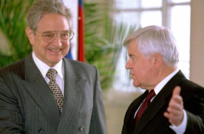 Sicer pa je treba vedeti, da je Golob pri svojem pajdašenju s Sorosem mlajšim le nadaljeval politiko botra rdeče buržoazije Milana Kučana, ki je Sorosu starejšemu leta 2000 izročil državno odlikovanje. George Soros je od Kučana takrat prejel častni znak svobode Republike Slovenije, ki naj bi si ga po Kučanovi oceni zaslužil zaradi svojih zaslug pri spodbujanju in razvijanju odprte demokratične in humane družbe v današnjem svetu, kot tudi zaradi zaslug pri uveljavljanju odprte, strpne in razsvetljene civilne družbe v Sloveniji. Takrat je Soros tudi zelo pokroviteljsko pohvalil Slovenijo, da postaja strpna država, in se veselil tega, da bo kmalu vstopila v Evropsko unijo. Kučan pa mu je pihal na dušo o tem, kako Soroseva knjiga O globalizaciji spodbuja “intelektualni premislek o svetu”. Med leti 1992 in 2000 je v Sloveniji delovala tudi uradna izpostava njegove fundacije, ukinil pa jo je zato, ker naj v Sloveniji ne bi bila več potrebna. A pravzaprav so njene lovke še vedno prisotne preko bolj pritlehnega usmerjanja in financiranja t. i. “nevladnikov”.