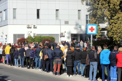 Slovenska Bistrica: Tako so ljudje čakali na vpis k novi osebni zdravnici. (Foto: Bobo)140 tisoč ljudi je brez osebnega zdravnika. Ker pa imamo 50 tisoč odraslih pri pediatrih, je manj prostora za otroke. Da ne omenjamo, da vlada tudi pomanjkanje ginekologov. Njihova “reforma” tako ni šla v smer krepitve javnega sistema, temveč so del kadra spodbudili k odhodu v zasebni sektor. Kot pravijo Mladi zdravniki, nobena vlada doslej ni tako izrazito pospešila premikov v smer privatizacije, kot pa aktualna vlada.