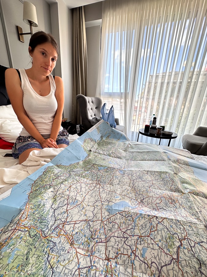 Počutila sva se res slabo. In to oba hkrati. Res neprijetna situacija. V hotelski sobi sva si na plinskem gorilniku kuhala čaj in instant hrano. Za kaj več nisva bila pri močeh. In v takem stanju sva si želela samo domov. V domačo posteljo, kjer je udobno, toplo in imava vse čajčke, zdravila, hrano v skrinji. A bila sva na začetku potovanja (minil je 1 teden od načrtovanih 3), zato bi odhod domov pomenil konec potovanja in Turčije sploh ne bi zares videla. Hkrati pa … kako domov, če imaš avto, vožnje je za 2 dni in v takem stanju te vožnje ne bi zmogla. Preigravala sva vse možne scenarije. Letiva domov, se pozdraviva in potem nazaj? Avto pa ostane v Turčiji. Prosiva nekoga od domačih, da prileti v Carigrad in naju ter avto spravi domov? Ali pa pač ostaneva tu v hotelu, se pozdraviva in potem nadaljujeva. Ampak glede na počutje naju je skrbelo, da bo to dolgo trajalo. Ne bi bilo smiselno 2 tedna preživeti v hotelu.
